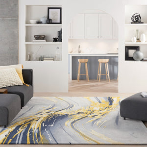 Imagine the soft, luxurious feel of wool as you walk over this abstract beauty. The gray and gold tones create a refined palette that complements a variety of decor styles, making it a versatile addition to your home.