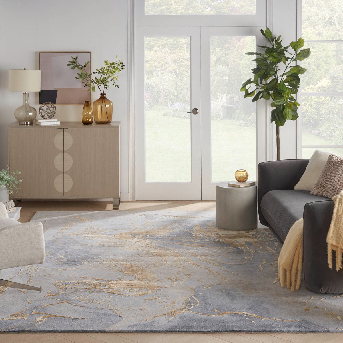 Enhance your space with the Nourison Prismatic Grey Gold PRS28 rug, a stunning blend of modern design and industrial flair. Made from luxurious wool, this hand-tufted masterpiece not only complements the aesthetics of your dining or living room but also provides a soft, inviting underfoot.