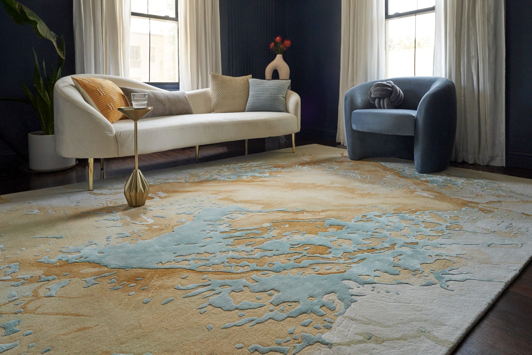 Introducing the Nourison Prismatic Sand Blue PRS36 rug, handtufted in China with a blend of wool and Luxcelle fibers. This abstract design is perfect for adding a modern touch to any living or dining room. The beige color palette complements a variety of decor styles, while the anti-allergic and anti-static properties make it a practical choice for any home. Available in multiple sizes, this rug is both stylish and functional. Elevate your space with the Nourison Prismatic Sand Blue PRS36 rug.