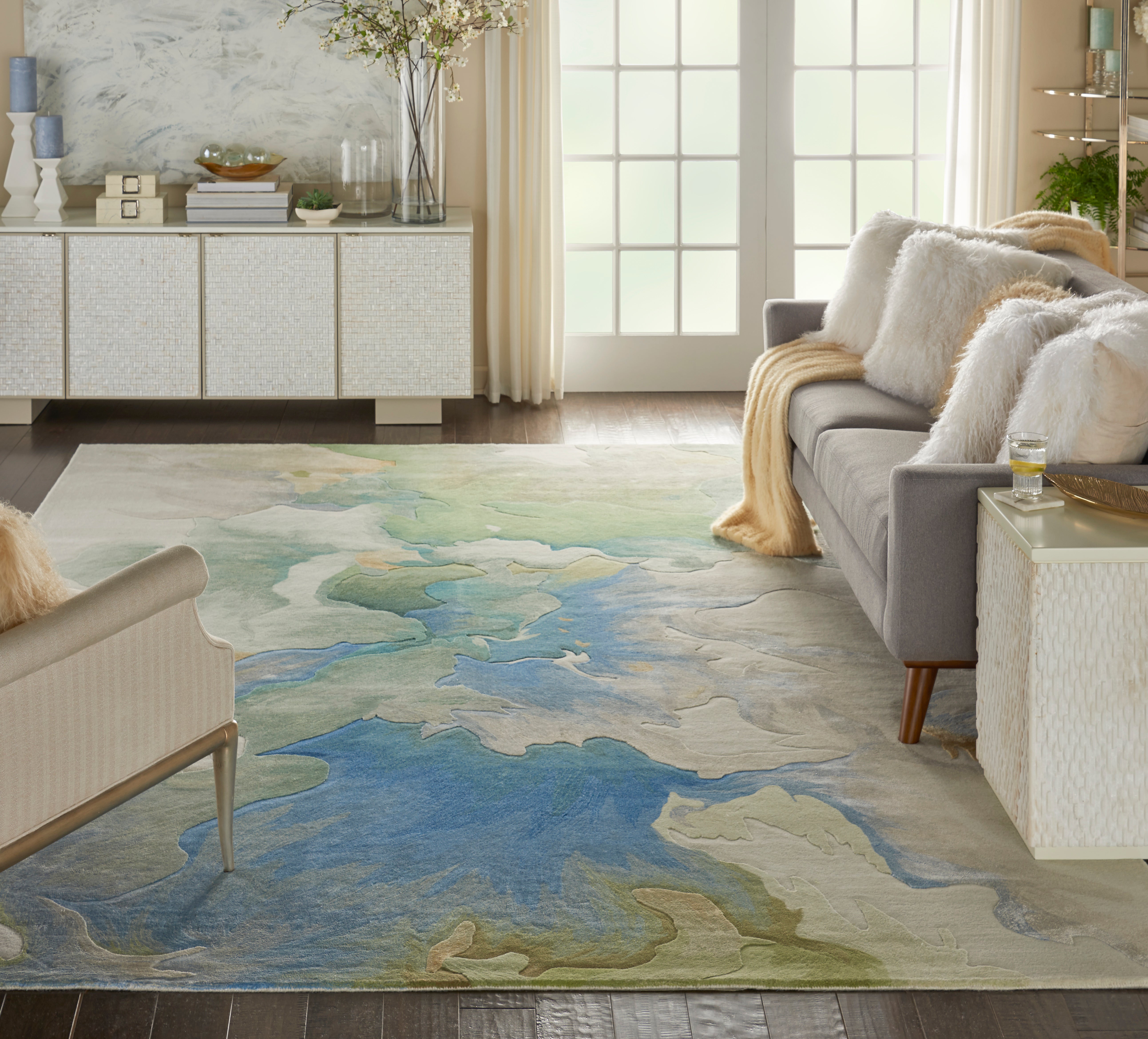 Introducing the Nourison Prismatic Seafoam PRS16 rug, handtufted in China with a blend of wool and Luxcelle fibers. This modern design features a vibrant abstract pattern in multicolor tones, making it a perfect statement piece for any living or dining room. Not only is this rug anti-allergic and anti-static, but it also comes in various sizes to fit your space perfectly. Add a touch of luxury and style to your home with this exquisite handtufted carpet from Nourison.