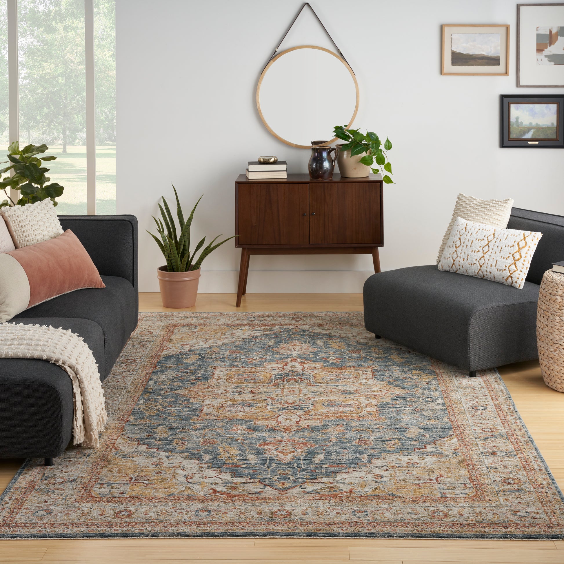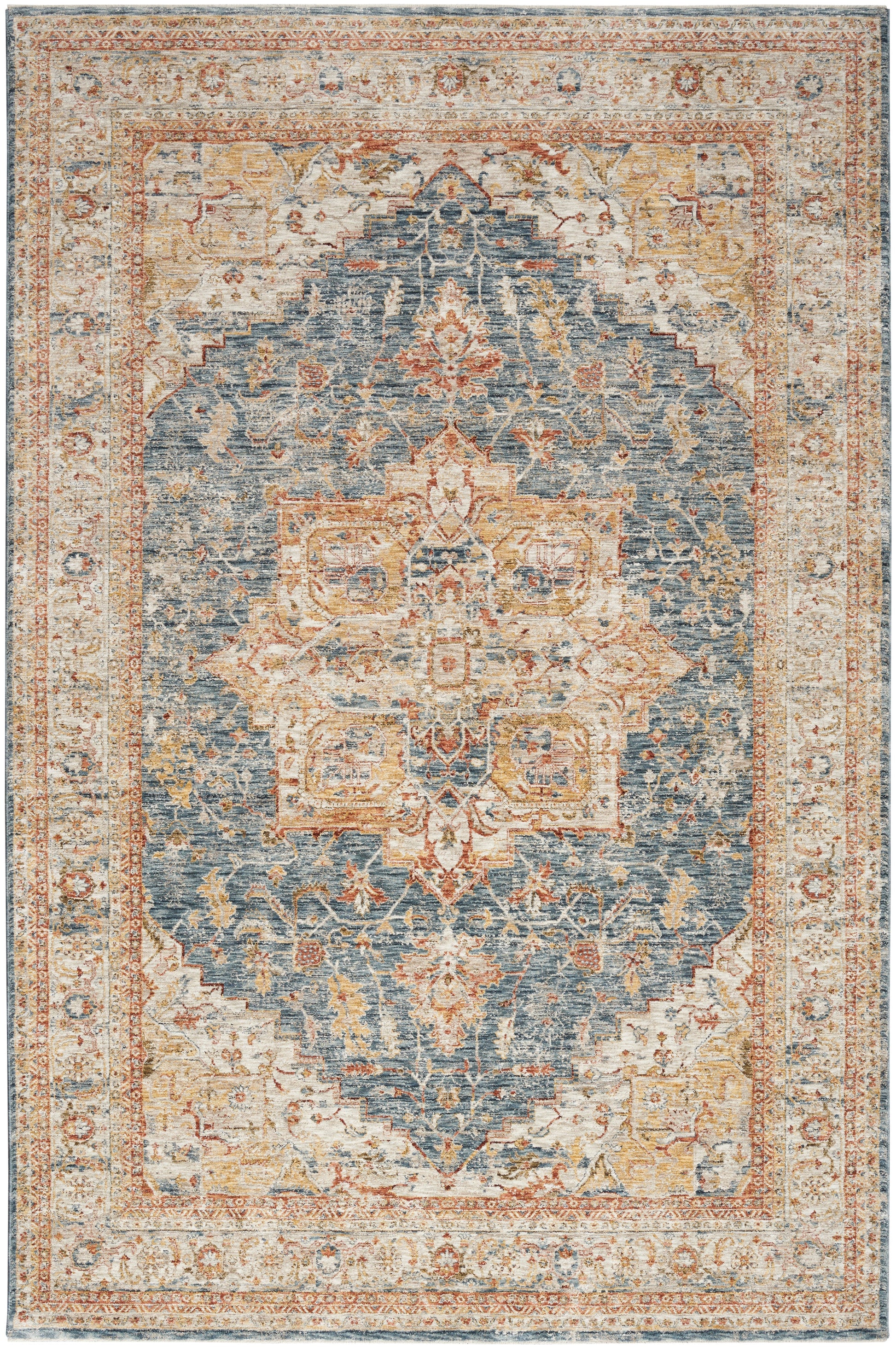 Introducing the Nourison Sahar Ivory Blue SHR06 rug, a stunning addition to any room in your home. Made in Turkey, this vintage-inspired rug features a classic design with intricate ethnic medallion patterns. Crafted from durable polyester, this woven carpet is available in a beautiful blue and beige color scheme. Perfect for adding a touch of elegance to your living room, dining room, or bedroom. This rug is anti-allergic and anti-static, making it a practical and stylish choice for your home decor. Choose from multiple sizes to fit your space perfectly. Elevate your space with the timeless beauty of the Nourison Sahar Ivory Blue SHR06 rug.