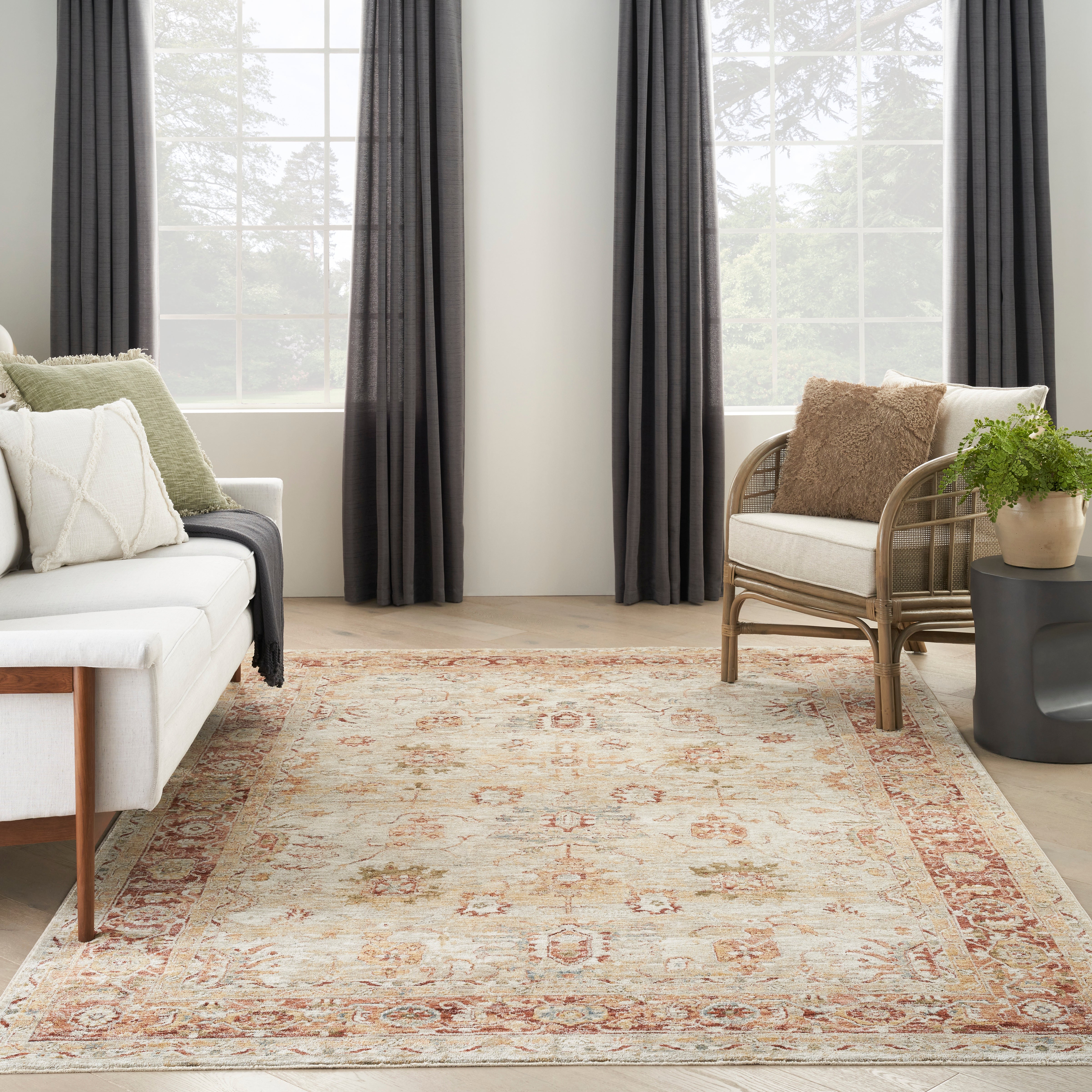 Introducing the Nourison Sahar Ivory SHR02 rug, a stunning addition to any room in your home. Made in Turkey, this vintage and classic rug is crafted from high-quality polyester, making it both durable and easy to clean. The ethnic design features a beautiful ivory and orange color scheme, adding a touch of elegance to your living space. Available in multiple sizes, including 119 x 180 cm, 160 x 234 cm, 239 x 315 cm, and 69 x 310 cm, this rug is perfect for bedrooms, dining rooms, and living rooms. Not only is it anti-allergic and anti-static, but it also boasts a timeless design that will complement any decor style. Elevate your space with the Nourison Sahar Ivory SHR02 rug today.