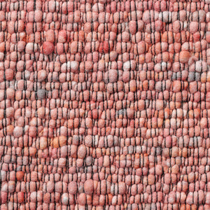 Contact us via:The Perletta Gravel 111 Peach is a handwoven wool rug that combines soft texture with a gentle pop of colour. Featuring the signature twisted yarns of the Gravel collection, this rug is finished with a black warp thread, adding a contemporary edge and enhancing the depth of its warm, pastel tone.