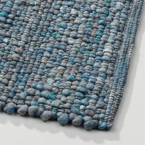 Contact us via:The Perletta Gravel 153 Aqua is a handwoven wool rug that brings a breath of fresh air to your interior. Built on the same tactile, twisted structure as the Pebbles collection, Gravel introduces a refined twist: a black warp thread that subtly deepens the tone and adds modern definition.