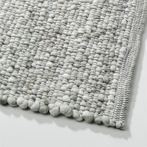Contact us via:The Perletta Gravel 446 Dawn is a handwoven wool rug that brings a refreshing touch of light green with a soft, pastel undertone. Like the Pebbles collection, the Gravel collection features twisted yarns, creating a pebble-like surface. The addition of a black warp thread enhances the overall depth and contrast, giving it a modern, sophisticated edge.