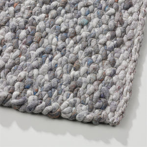 Contact us via:The Perletta Knot Mix Lavender 491 / Dusk 475 / Sky 058 is a serene and expressive handwoven wool rug that blends gentle cool tones into a refined, textural surface. As part of the bold and tactile Knot collection, it features a signature chunky looped weave combining dusty Lavender, soft Dusk, and misty Sky—a harmonious mix of purple-grey and cool blue hues that evokes quiet sophistication.