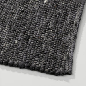 The Perletta Neon 434 Fog rug combines luxurious wool, deep grey tones, and bold black thread, making it a perfect addition to any home looking for a stylish, modern foundation with both warmth and sophistication.