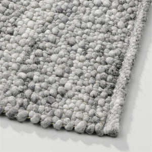 Contact us via:The Perletta Pebbles 433 Slate is a handwoven wool rug that balances bold texture with natural sophistication. Its structured surface is created using twisted wool yarns, giving it a tactile, pebble-like finish that adds both depth and comfort to any room.