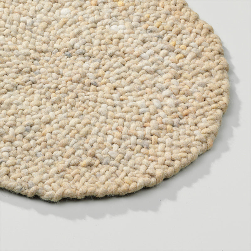 The Perletta Roundabout Fine 124 Sand rug combines luxurious wool, neutral tones, and elegant craftsmanship, making it a perfect addition to any home looking for warmth, comfort, and modern style.
