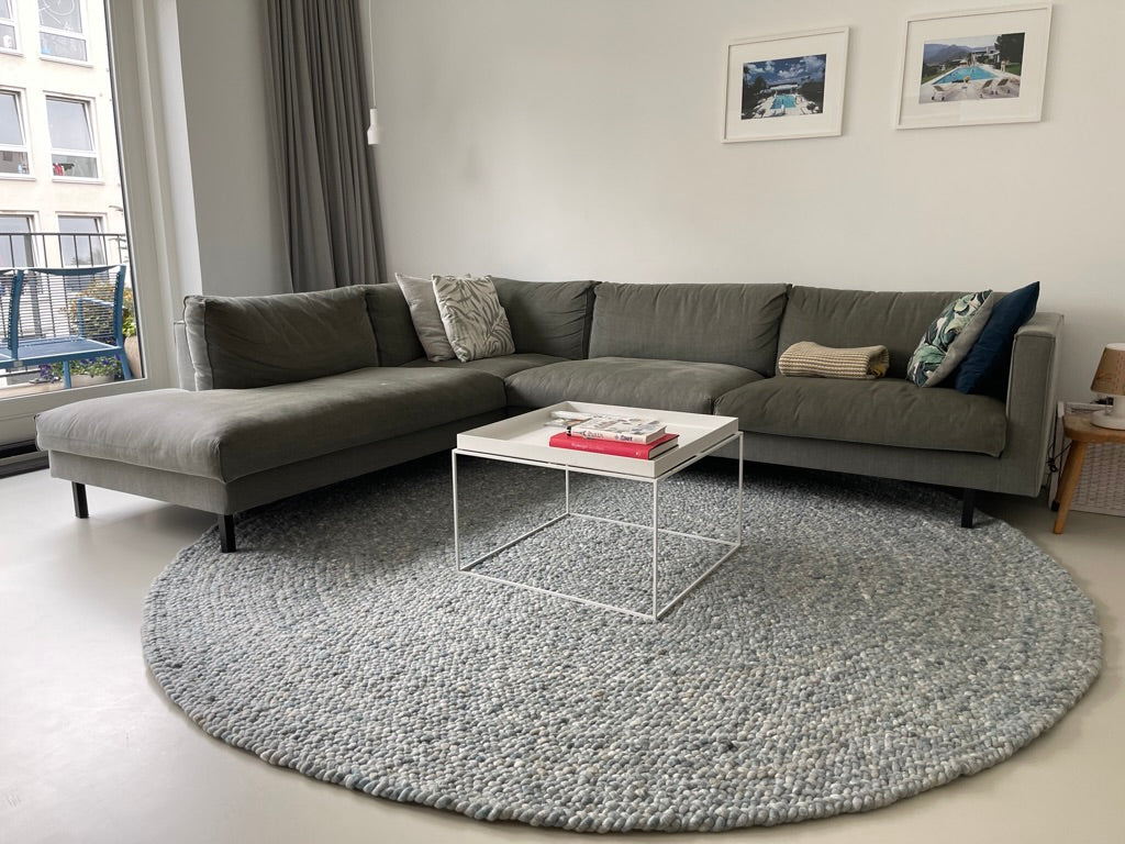 Contact us via:The Perletta Roundabout Fine 343 Mint is a handwoven wool rug that combines luxurious comfort with a refreshing, soft colour. Featuring a fine, braided structure, this rug offers both durability and easy maintenance, making it perfect for high-traffic areas like dining rooms and living rooms. Each Perletta rug is made to measure, ensuring a perfect fit for your space. The Mint colour is a soft, pastel green, bringing a cool, calming vibe to your room, while the fine braided structure adds an elegant touch to the design.