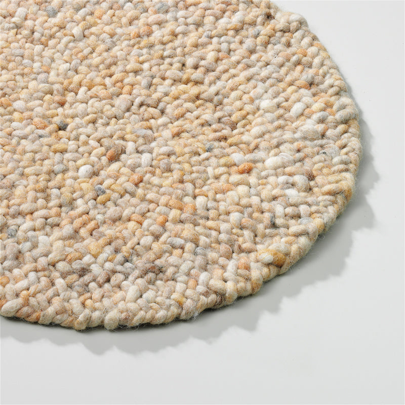 Contact us via:The Perletta Roundabout Fine 423 Honey is a handwoven wool rug that combines luxurious comfort with rich, golden tones. Featuring a fine, braided structure, this rug offers durability and easy maintenance, making it perfect for high-traffic areas like dining rooms and living rooms. Each Perletta rug is made to measure, ensuring a perfect fit for your space. The Honey colour is a warm, golden beige, adding a cozy and inviting atmosphere to any room, while the fine braided structure adds a sophisticated touch to the design.