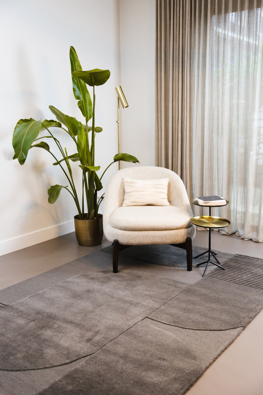 This rug feels genuinely comfortable thanks to its soft wool touch. It works beautifully under a light sofa, next to warm wood, linen curtains or a clean black detail. In a living room it creates a grounded, cozy base. In a bedroom it adds that quiet luxury feeling you want every day.