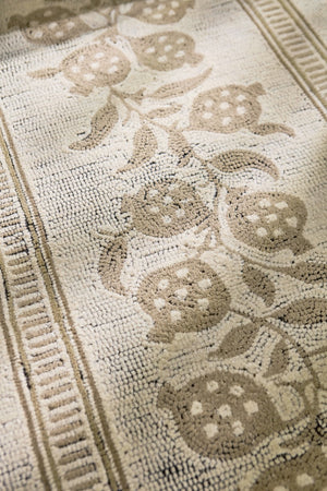 The Sanderson Anaar Flax 148001 rug brings a sense of natural refinement to any space. Inspired by Sanderson’s timeless botanical patterns, its stylised pomegranates and flowing leaf motifs add texture and quiet rhythm to the room. The soft Flax shade blends beautifully with linen fabrics, light woods and neutral interiors – a subtle foundation for warm, modern living.