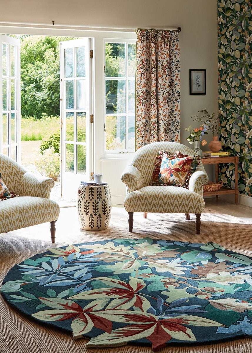 Transform your space with the Sanderson Robin's Wood Forest Green carpet, a stunning addition that brings nature indoors. Made from luxurious wool, this hand-tufted masterpiece not only enhances the aesthetics of your dining or living room but also offers unparalleled comfort underfoot.