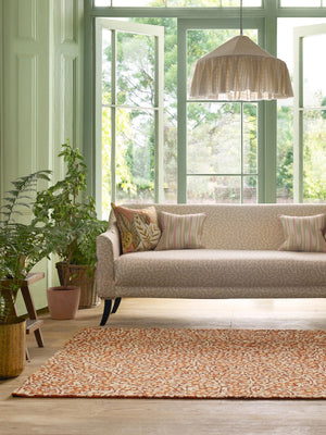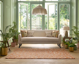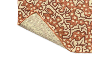 The Sanderson Truffle Sandstone 446003 outdoor rug showcases a warm sandstone base with subtle organic patterns inspired by natural stone and earth tones. Made from 100% recycled PET fibers, this hand-tufted rug offers a resilient 6mm pile that is ideal for patios, balconies, or garden rooms, combining style and durability for your outdoor living spaces.