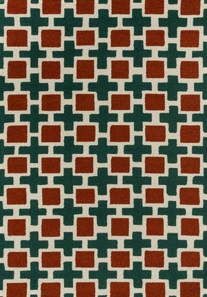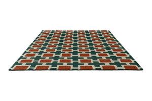 The Scion Hatch Rust 124903 rug presents a warm interplay of rich rust and deep green geometric shapes, layered over a natural, earthy background. Handtufted from 100% pure new wool, its soft 8mm loop pile offers durable comfort, perfect for bringing warmth and subtle texture to contemporary living rooms, dining areas, or home offices.