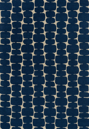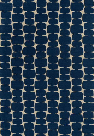 The Scion Little Lohko Indigo 124208 rug brings a vibrant touch to contemporary interiors. Featuring a dynamic geometric pattern in shades of indigo, navy, and cream, this design adds movement and warmth to any space. Crafted from 100% pure new wool, the rug offers a soft, insulating surface that combines comfort with artistic detail.
