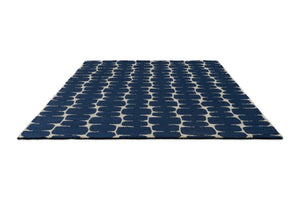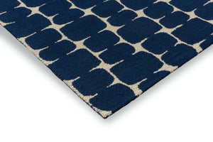 Design: Dynamic geometric pattern in indigo, navy, and cream tones