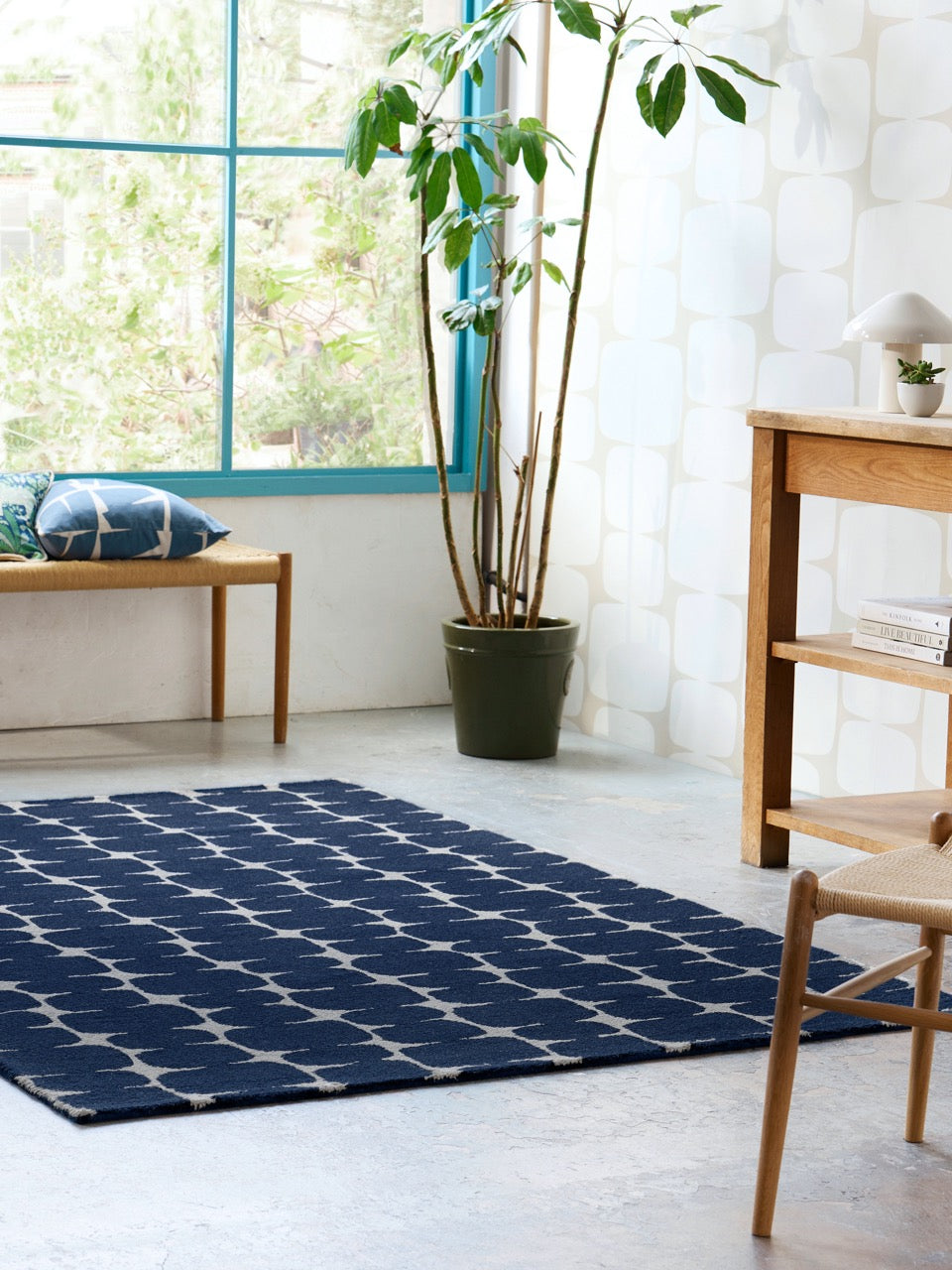 Imagine stepping onto a soft, geometric design that adds a modern flair to your bedroom or living room. The rich blue hue adds a touch of color, creating a serene atmosphere that complements various decor styles.