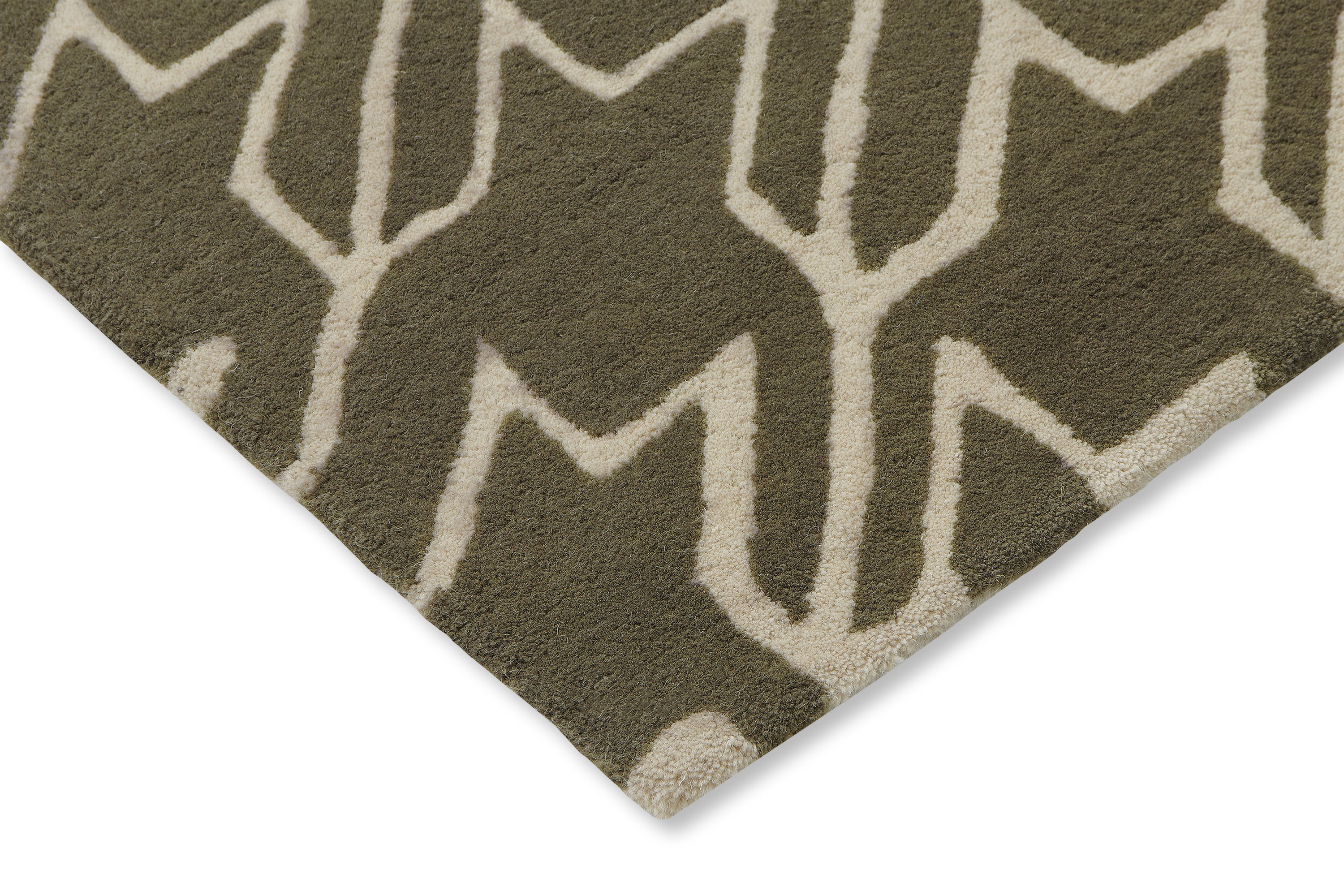 Crafted from 100% pure new wool, this rug offers natural warmth, softness, and insulation — making it a practical luxury for everyday living. The hand-tufted technique adds crisp definition to the bold pattern, while the 12 mm pile height ensures comfort underfoot without excess bulk.