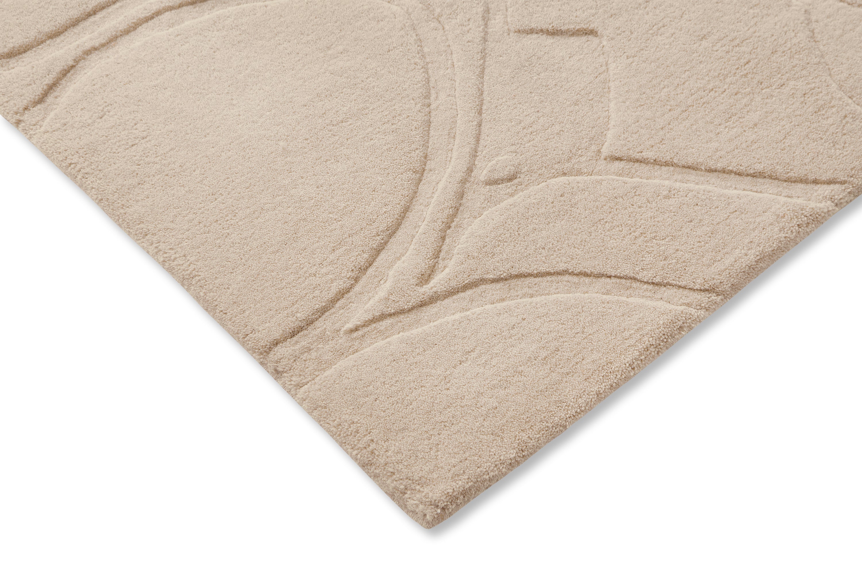 Crafted from a premium blend of 96% pure new wool and 4% viscose, this rug offers natural insulation and softness with just a hint of sheen. Its hand-tufted texture and 12 mm pile height provide plush comfort, while the cotton-latex backing ensures lasting structure and stability.