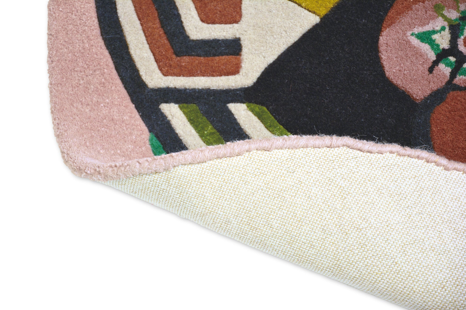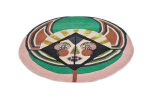 Handtufted from a premium blend of 85% pure new wool and 15% viscose, the surface has a soft, cushioned feel underfoot with a subtle shimmer that enhances the intricacy of the pattern. Its round format and illustrative composition make it ideal for bedrooms, reading corners, or interiors with a personal, curated touch.