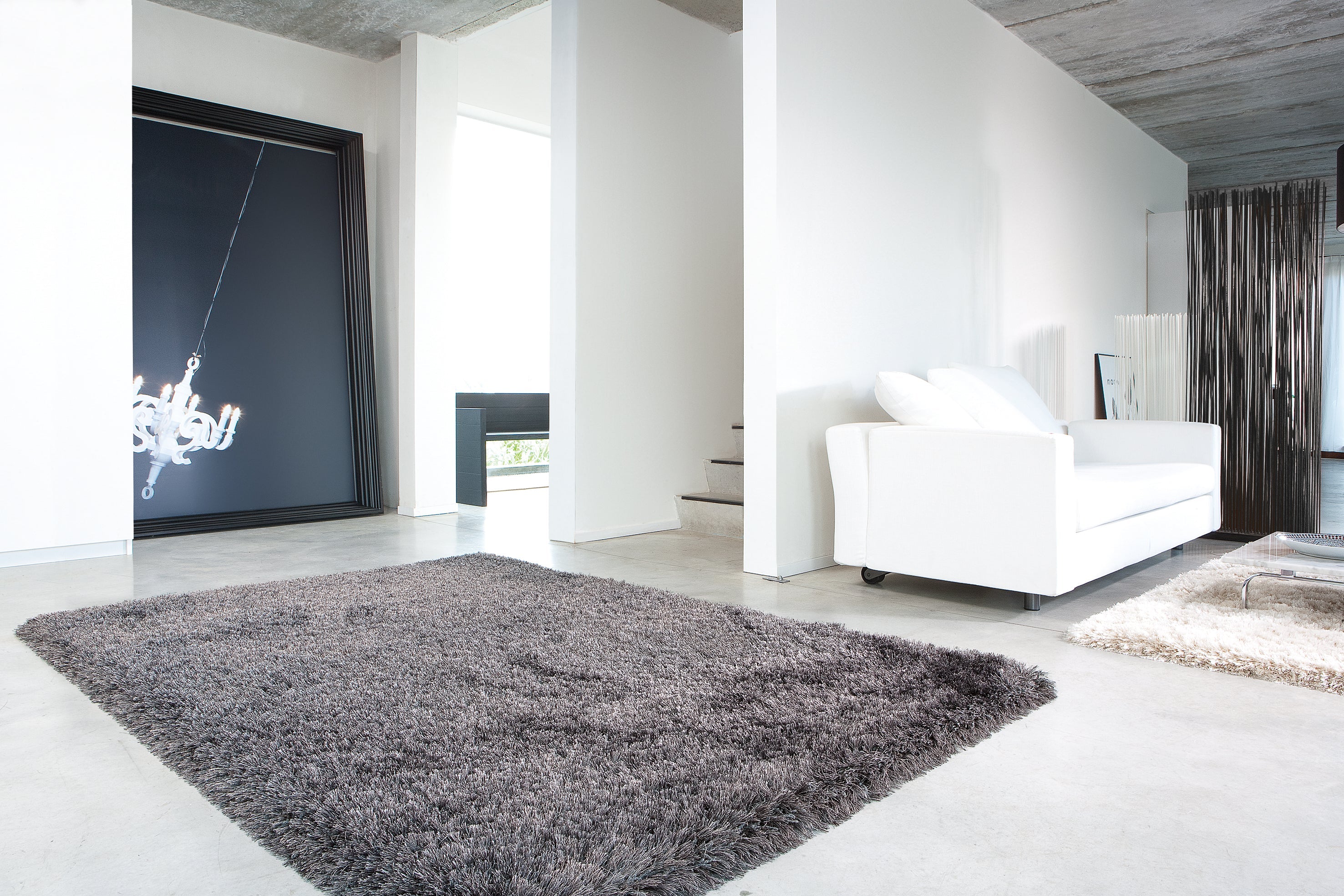 Let the rug contrast under a light sofa for added depth.