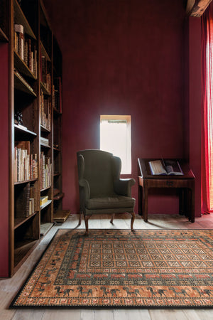 The warm brick orange and green shades pair beautifully with rustic woods, terracotta décor, and traditional interiors, while also adding energy to modern, minimalist spaces. Its structured border design makes it particularly well-suited for dining areas or living rooms where definition and elegance matter.