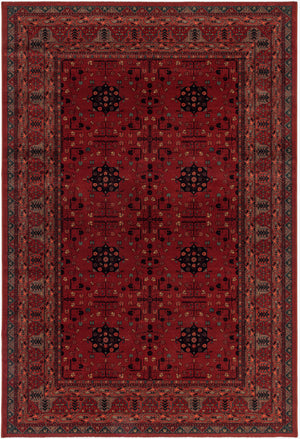 The Kazak Kashqai 4302.300 features a deep red base enriched with a striking border and a central ethnic motif. This combination creates a timeless Oriental-inspired look, with both structure and decorative flair. The design is rooted in tradition but remains versatile enough for modern interiors.