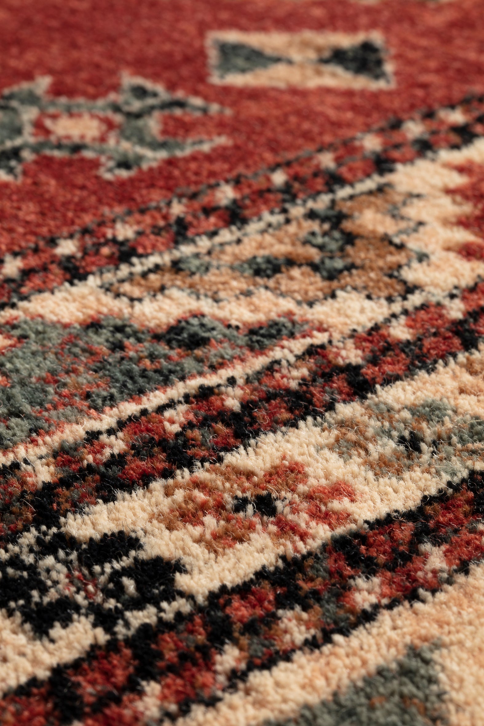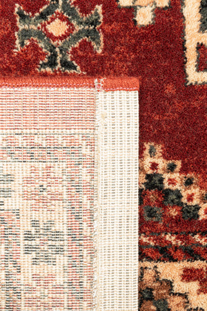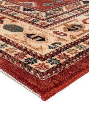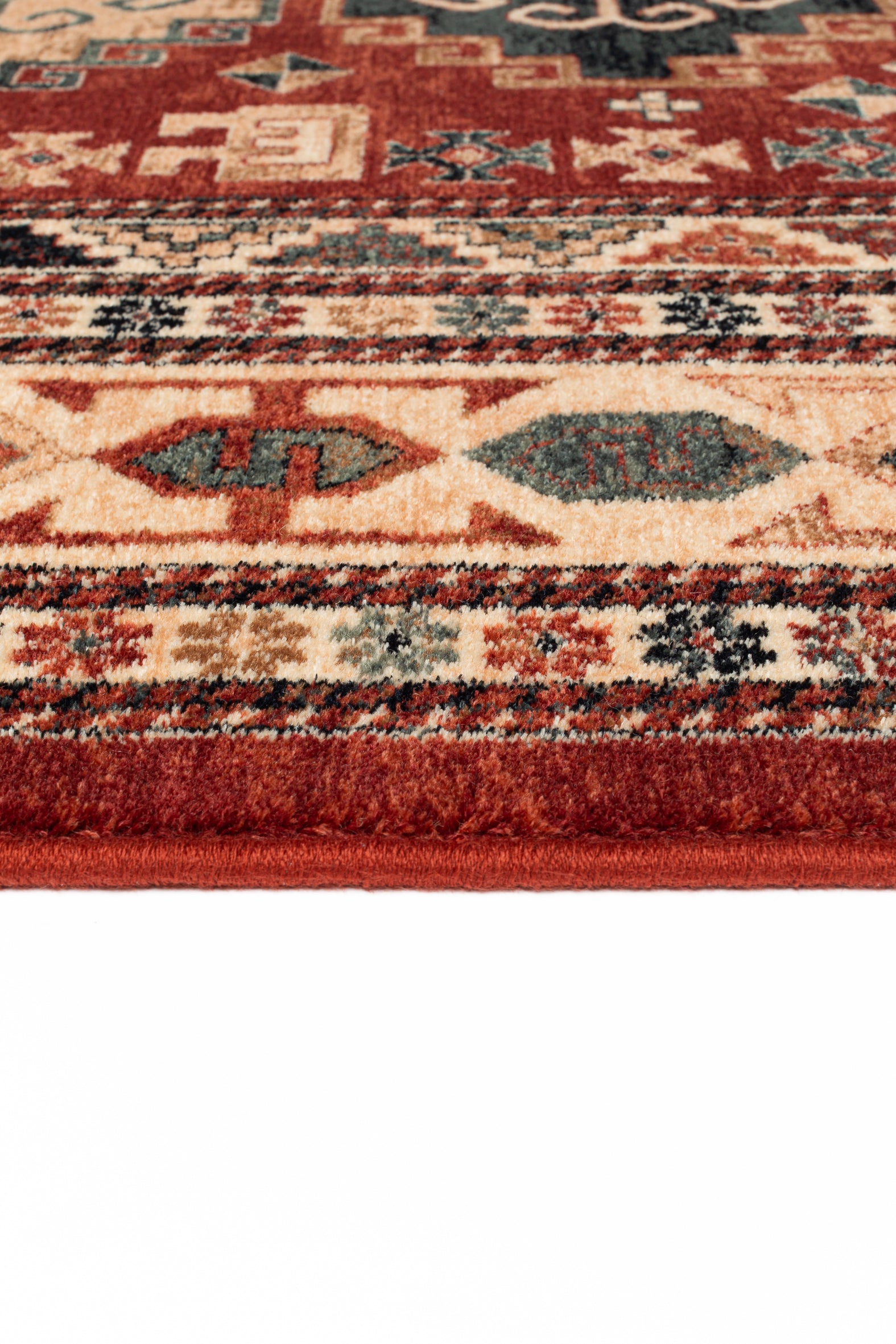 The Kazak Kashqai 4306.300 combines a bold red background with refined beige motifs, creating an ethnic design full of contrast and character. Rooted in Oriental inspiration, it carries the essence of traditional craftsmanship while offering a look that adapts seamlessly to both classic and modern interiors.