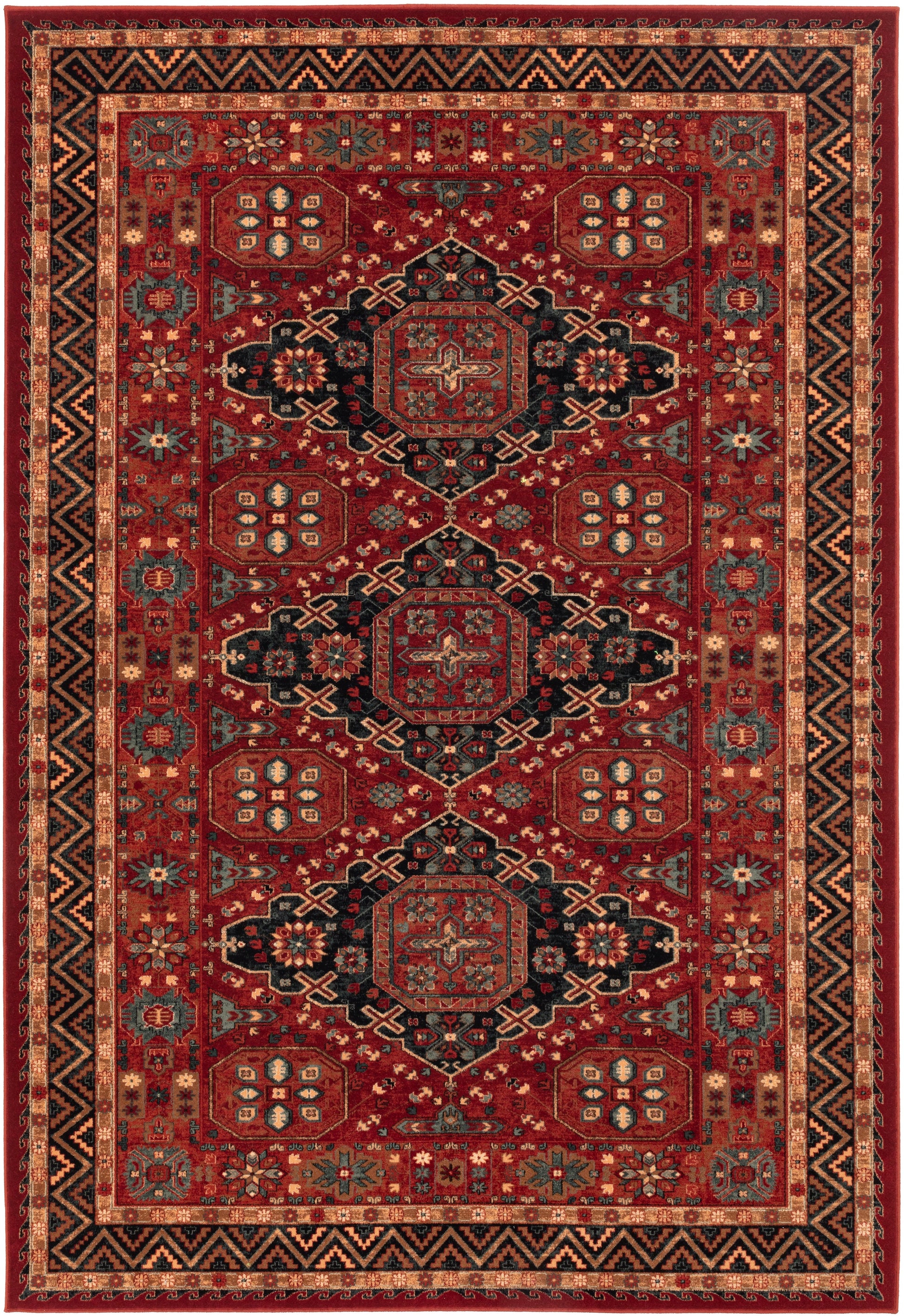 Traditional triple medallion in a vibrant red hue