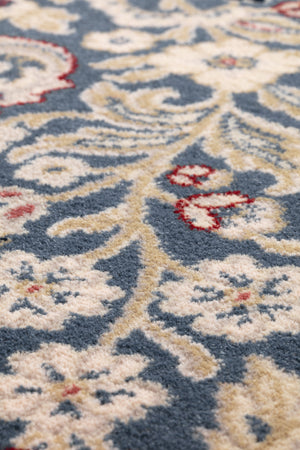 The Royal Classic Diamond 72201.901 features a rich blue base adorned with a refined floral pattern. While rooted in timeless Oriental tradition, the elegant detailing makes this rug perfectly suitable for contemporary interiors, adding depth, color, and sophistication.