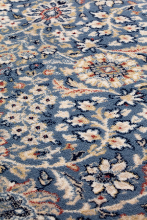 The blue base with beige accents makes this rug versatile and elegant. Perfect for living rooms or dining areas, it pairs beautifully with light furnishings, classical décor, or even contemporary interiors that need a touch of heritage refinement. The floral motif softens the look, creating a welcoming and timeless atmosphere.