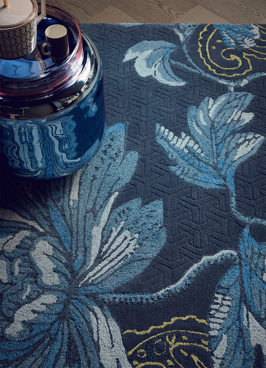 Transform your space with the Wedgwood Fabled Floral Navy rug, a stunning addition that effortlessly combines elegance and comfort. Made from a luxurious blend of viscose and wool, this hand-tufted masterpiece not only enhances your decor but also provides a soft, inviting underfoot.